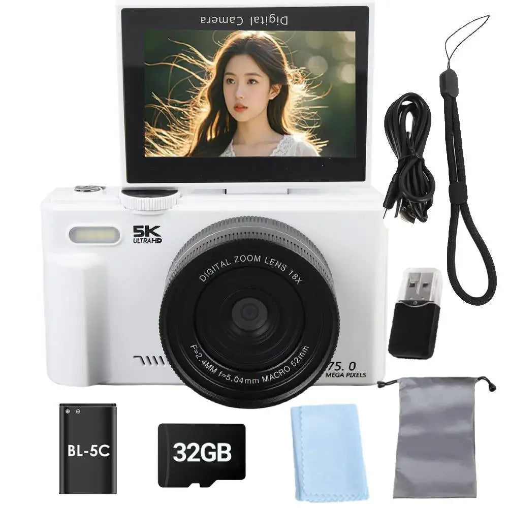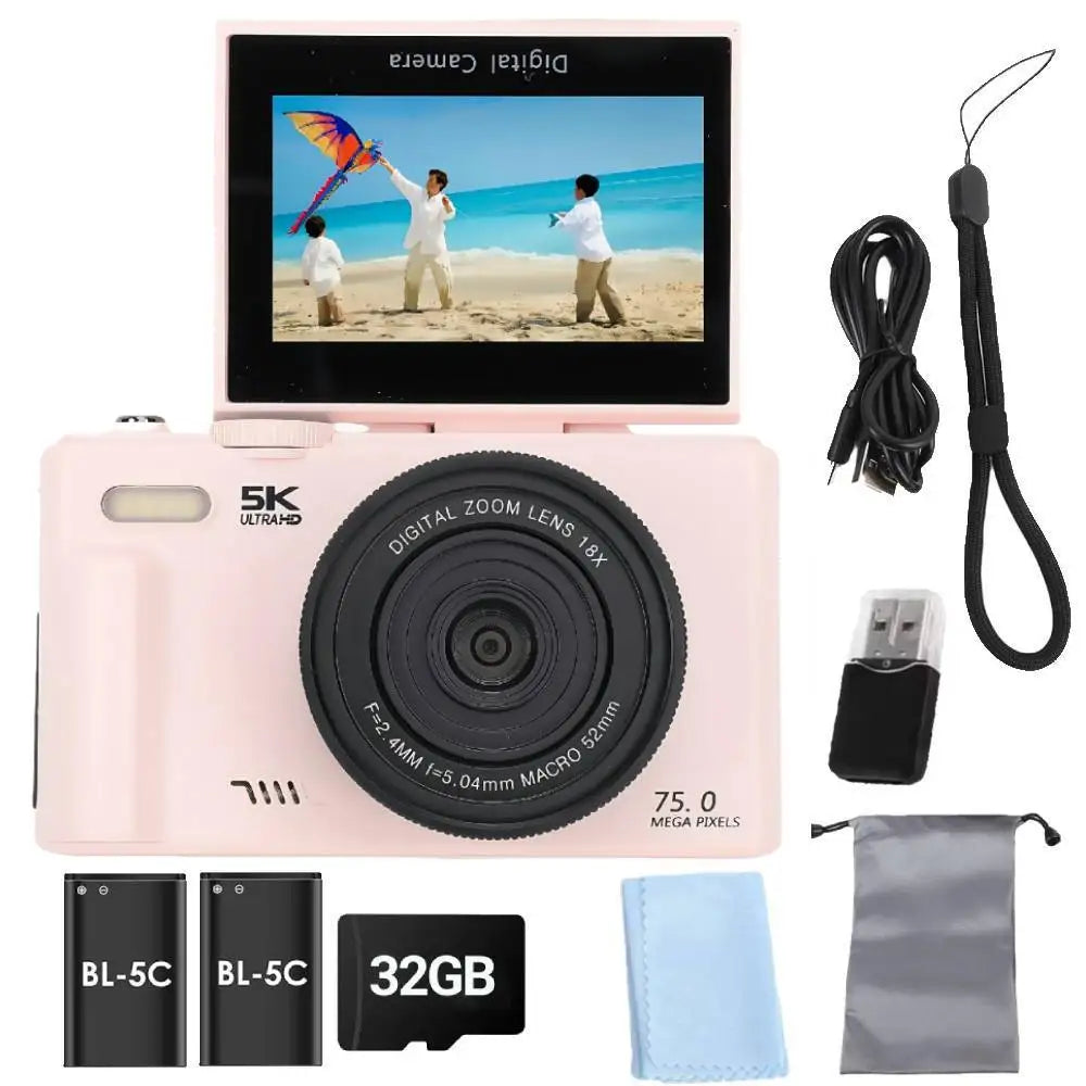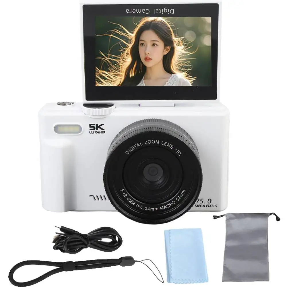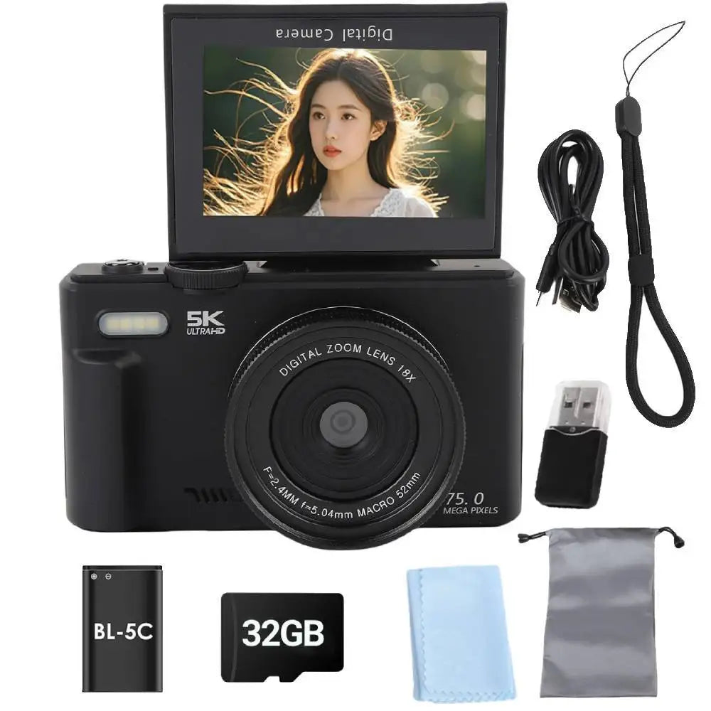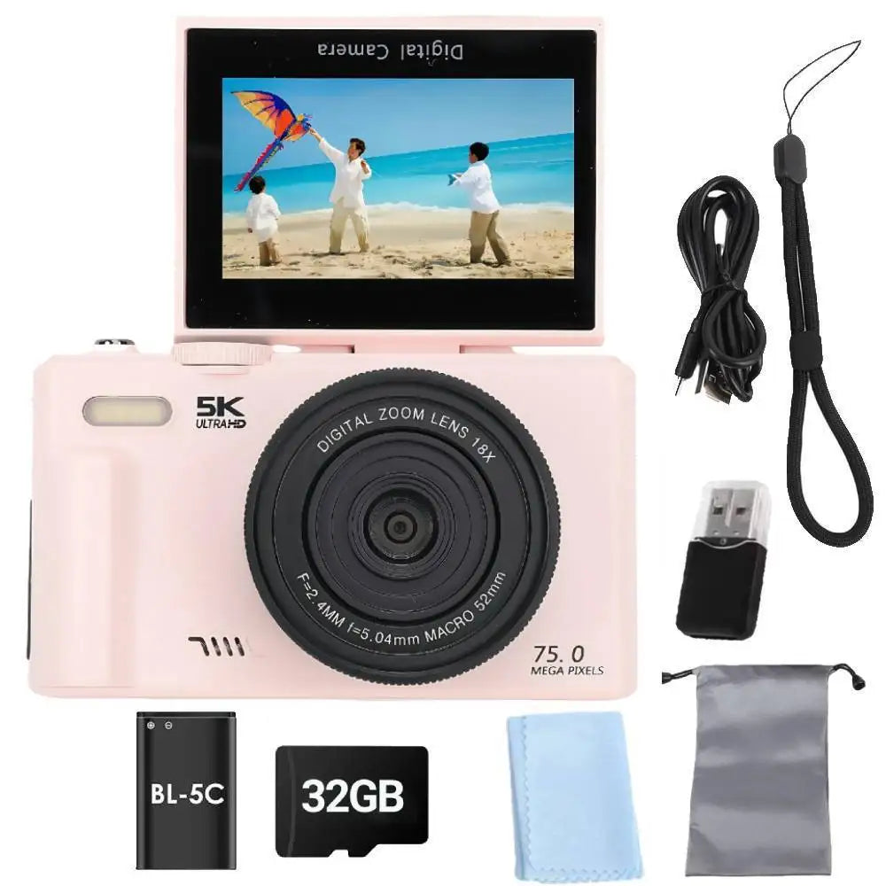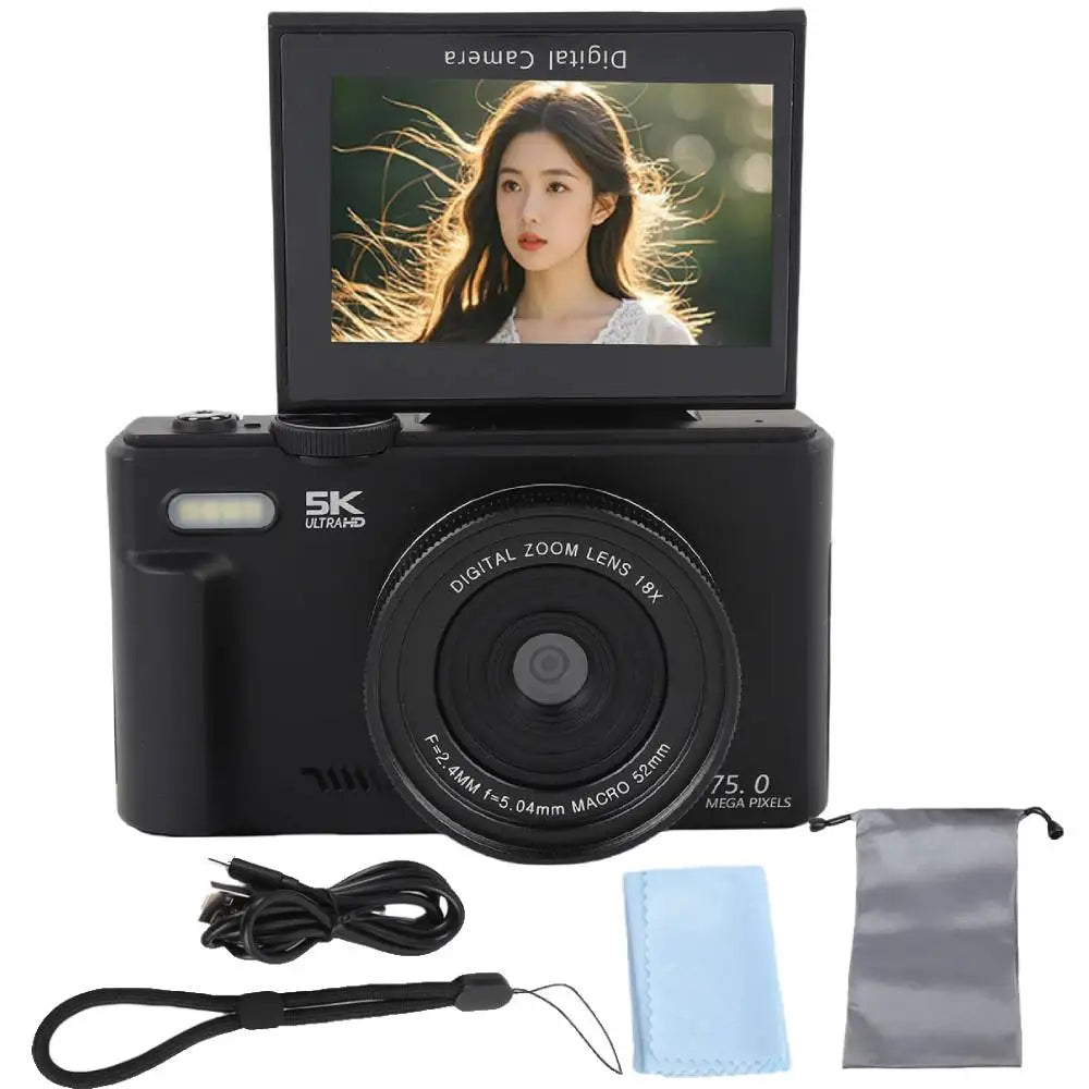 Cámara Digital 75MP 5K con Zoom 18X y Pantalla Giratoria